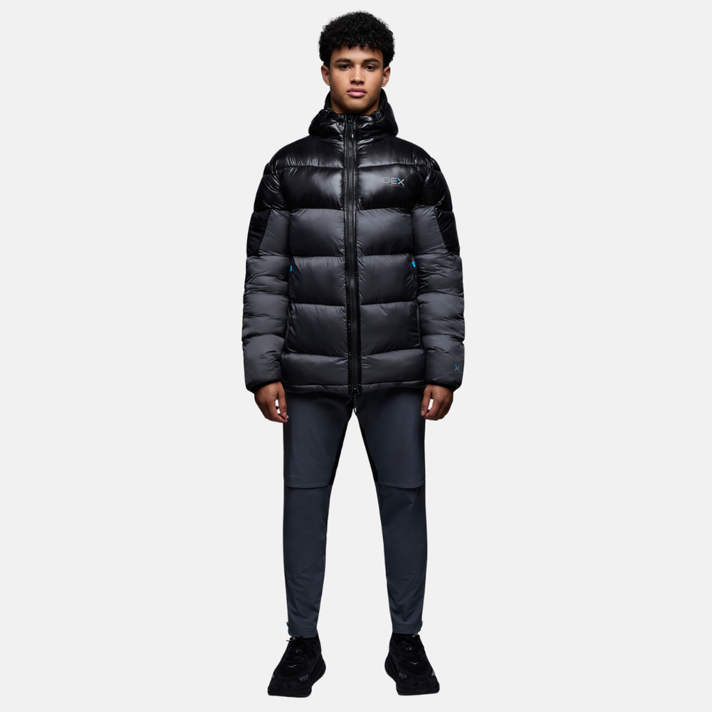 The OEX Monro Puffer Coat combines technical performance with refined aesthetics. Engineered with premium OEX reflective branding, an adjustable wadded hood for variable weather protection, and draft blocker cuffs that seal out wind and cold, this charcoal and black silhouette delivers layered warmth without compromise. Built for those who demand both visibility and versatility in their outerwear rotation.